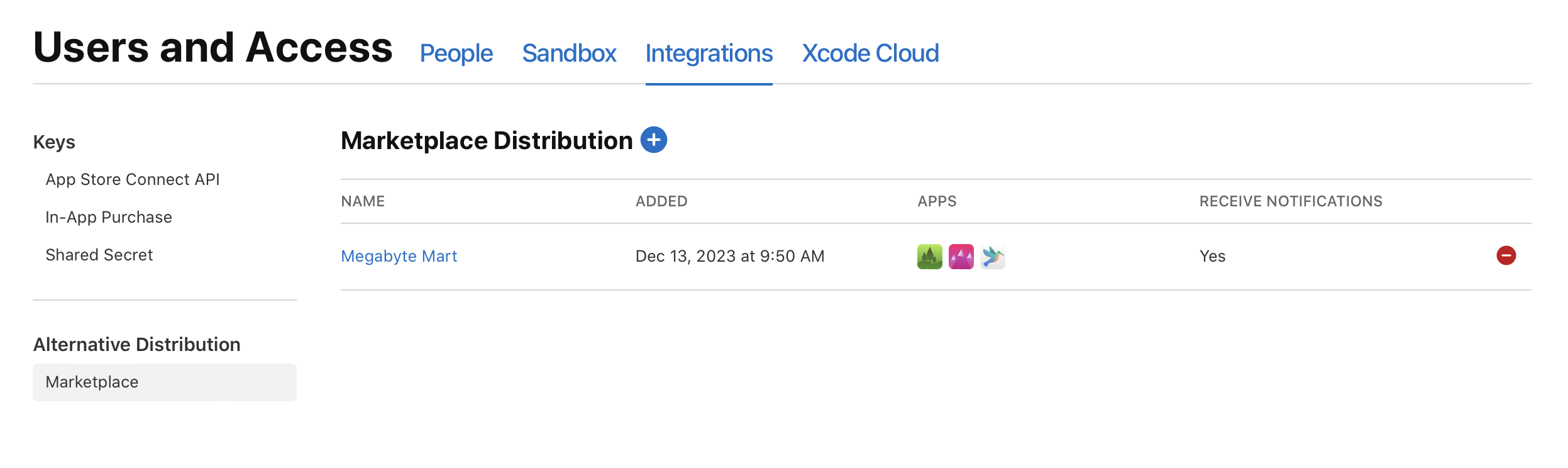 随后,你可以选择在该市场分发哪些 App,管理市场通知,并向市场开发者提供 App 的其他分发平台软件包,以便其分发你的 App。你还可以选择向市场开发者提供其他分发平台软件包 ID、软件包,或设置 ID 通知(如果该市场支持通知,Apple 会在 ID 可用时向其发出通知)。