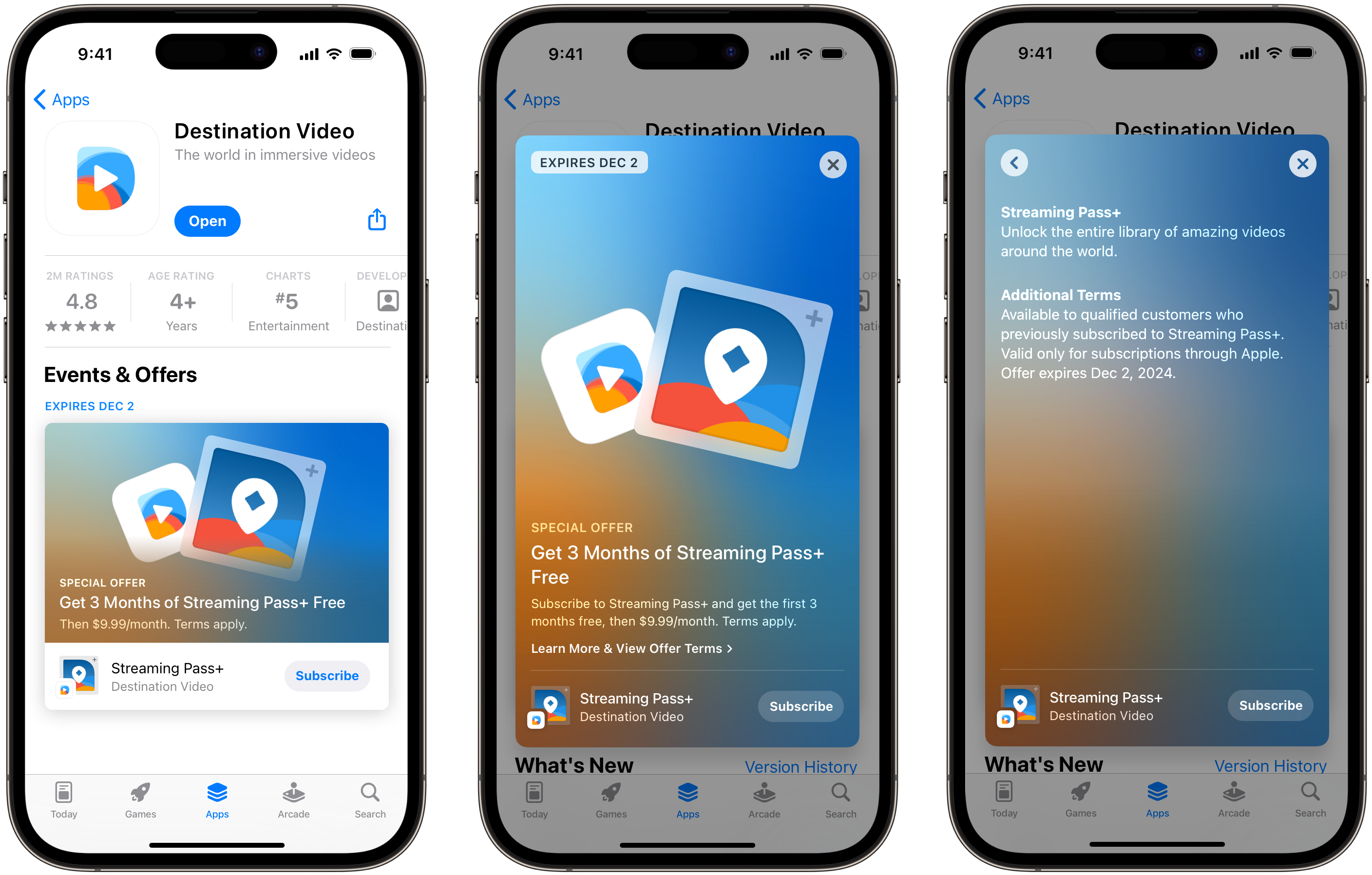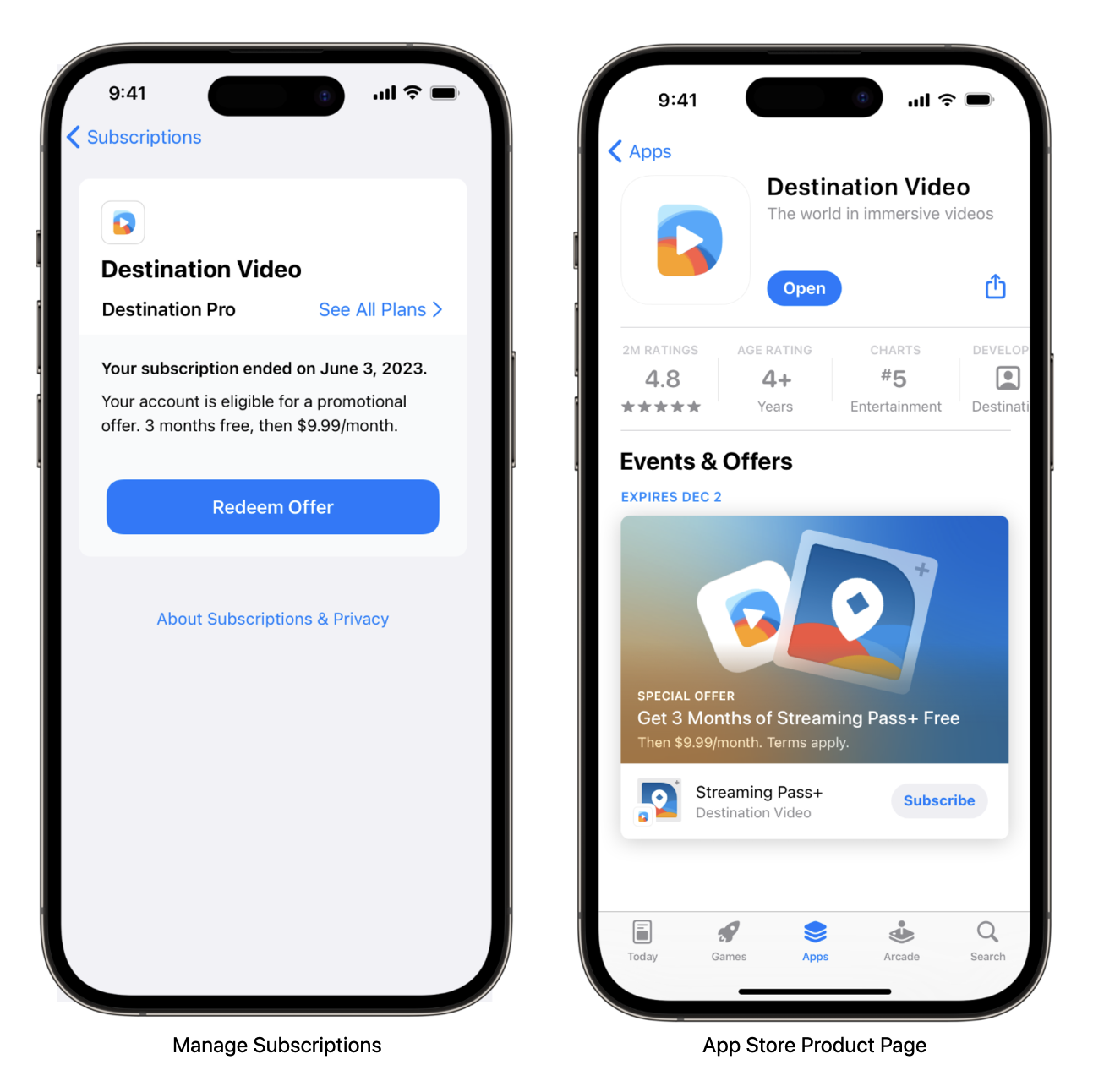 App Store 显示回头客优惠表单时,会同时显示订阅图像、App 图标、订阅显示名称和描述。订阅图像必须不同于 App 的图标或截屏。