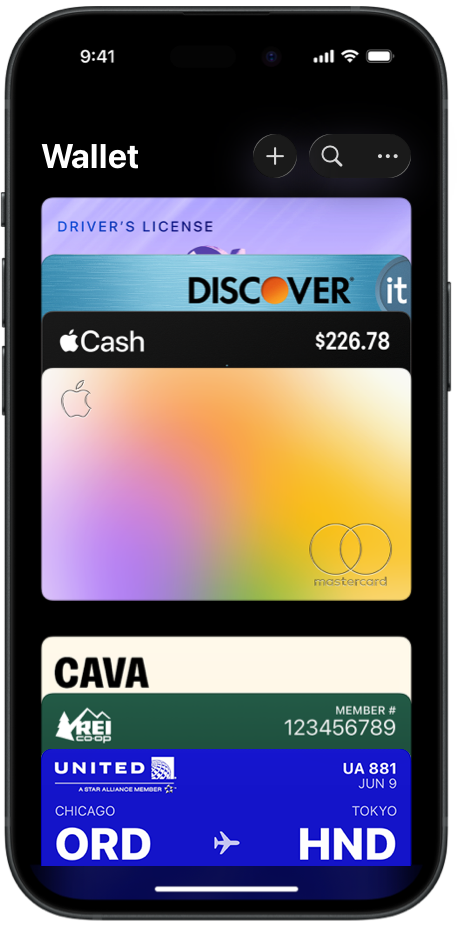 “Apple 钱包”为用户提供了一个便利的途径,方便用户集中收纳和使用各种积分卡、登机牌、门票和礼品卡等。通过与“Apple 钱包”结合使用,你可以在需要时提供相关信息,以及基于位置在 iPhone、iPod touch 和 Apple Watch 上出示相应凭证。