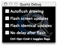 Upon launch, the QuartzDebug options window Figure 1 appears. It contains four debugging checkboxes (all initially deselected).