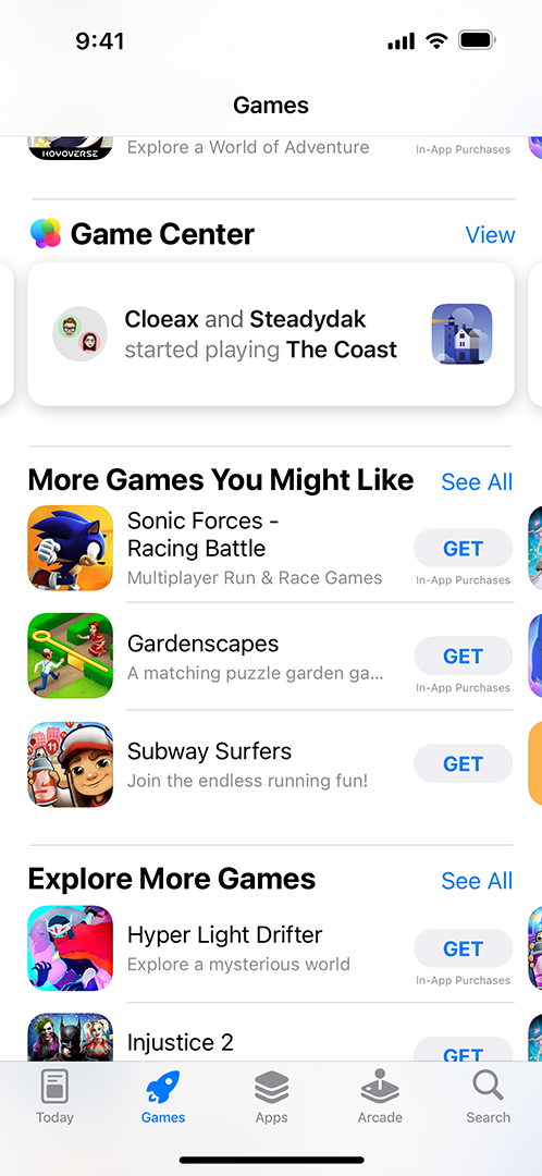 Game Center가 활성화된 게임은 Apple 기기 전반에서 더 자주 노출되며, App Store의 Game Center 활동 관련 위치에 표시됩니다. 이를 통해 친구들의 활동을 본 신규 플레이어가 게임에 유입될 수 있으며, 기존 플레이어는 게임을 계속 플레이할 동기가 생깁니다.