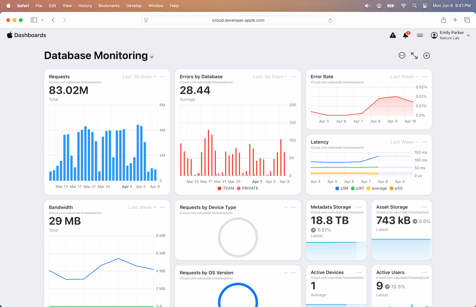 차트 유형, 위젯 크기, 색상 팔레트, 시간 범위 등 시각화 옵션을 맞춤 설정할 수 있습니다. KPI(Key Performance Indicator)를 활성화하여 평균값 또는 최솟값 및 최댓값을 표시하거나, KPI 세트 전체를 포함한 통계 표를 표시합니다. iPhone부터 Mac까지 다양한 기기에 대시보드를 표시할 수 있습니다. 또한 대시보드는 자동으로 새로 고침되므로 대형 디스플레이에 대시보드를 표시하여 적시에 업데이트를 받을 수 있습니다.