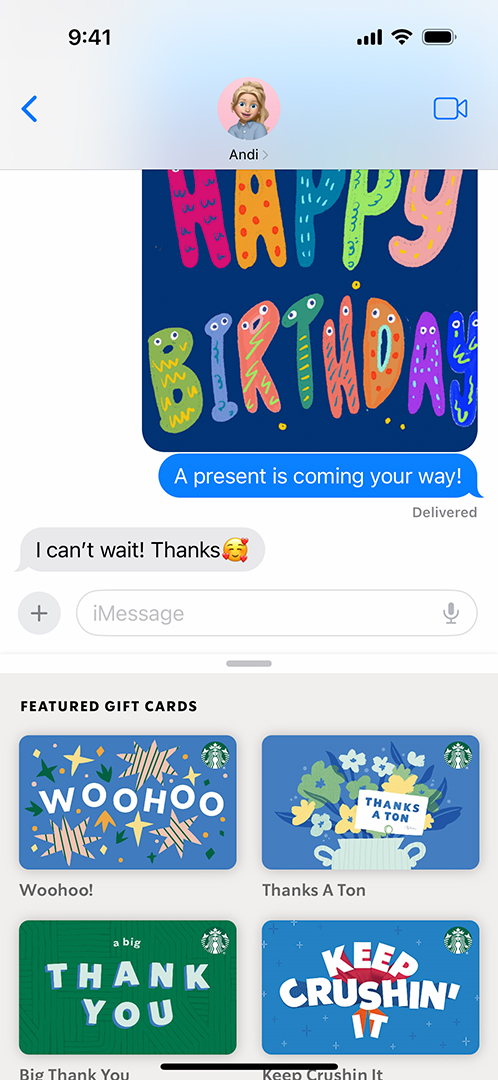 앱에 스티커, 텍스트, 비디오 및 오디오를 포함할 수 있습니다. 코드를 사용하여 Apple Pay 및 앱 내 구입과 같은 기능도 추가할 수 있습니다. iMessage용 App Store의 스티커 카테고리 또는 다른 적절한 카테고리에 앱이 표시되도록 선택하세요.