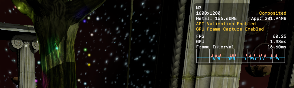 Metal Performance HUD로 Metal 앱에서 주요 그래픽 통계를 직접 모니터링하여 성능 문제를 쉽게 발견할 수 있으며 Xcode 또는 Instruments에서 캡처할 최적의 범위를 찾을 수 있습니다.