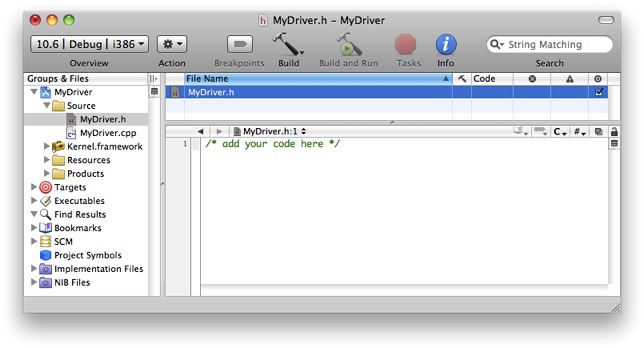 MyDriver.cppin your project’sSourcefolder. The default file contains no code.Edit