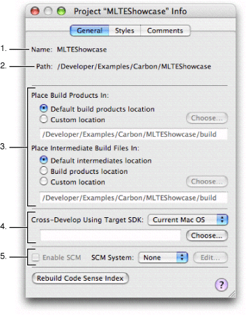 General. This pane, described below, contains options that let you control various project-level settings, such as the Source Control Management (SCM) system used by the project or the minimum version of Mac OS X the project is built to run on.