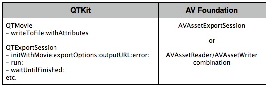 Figure 6  Media Export using QTKit and AV Foundation.