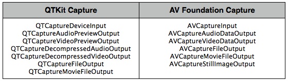 Figure 14  Device Capture Classes for QTKit and AV Foundation.