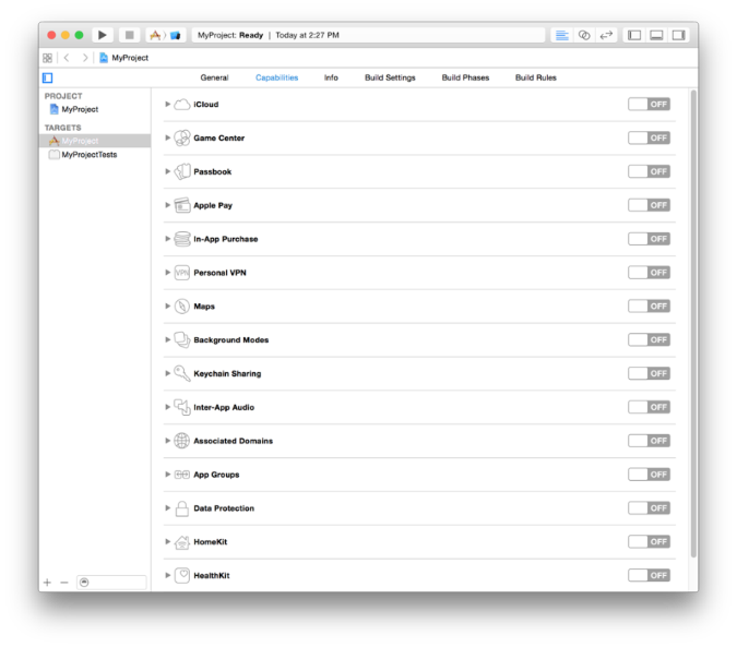 When a target Capability is toggled in Xcode, the corresponding Service is enabled on your app’s App ID on the website.
