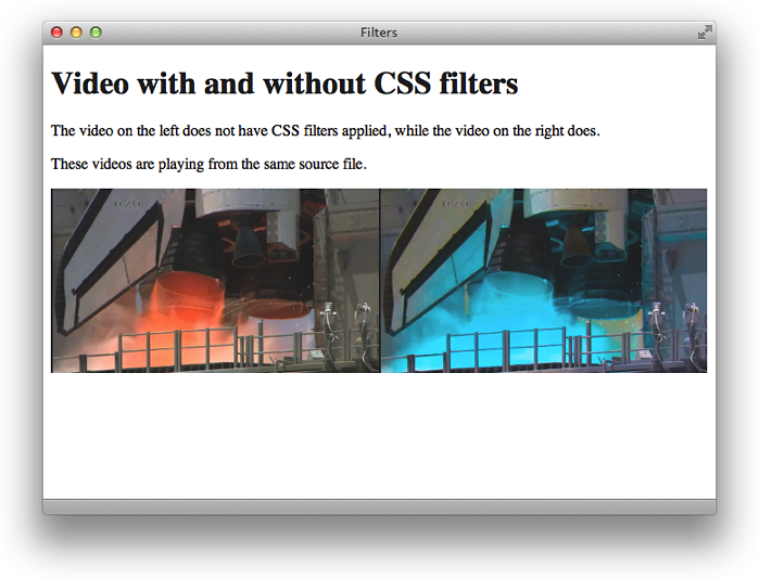 <p>The video on the left does not have CSS filters applied, while the video on the right does.</p>