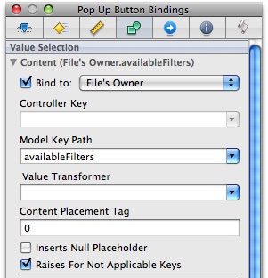6. You bind the method to the pop-up menu in Interface Builder, as shown in Figure 1-9.