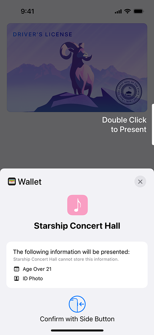 - ID Verifier - Display Only: Allows apps to use the iOS system UI to display Name, Age, ID Photo, and Age Over N data for in-person visual confirmation only. Apps don’t read or store the ID information.