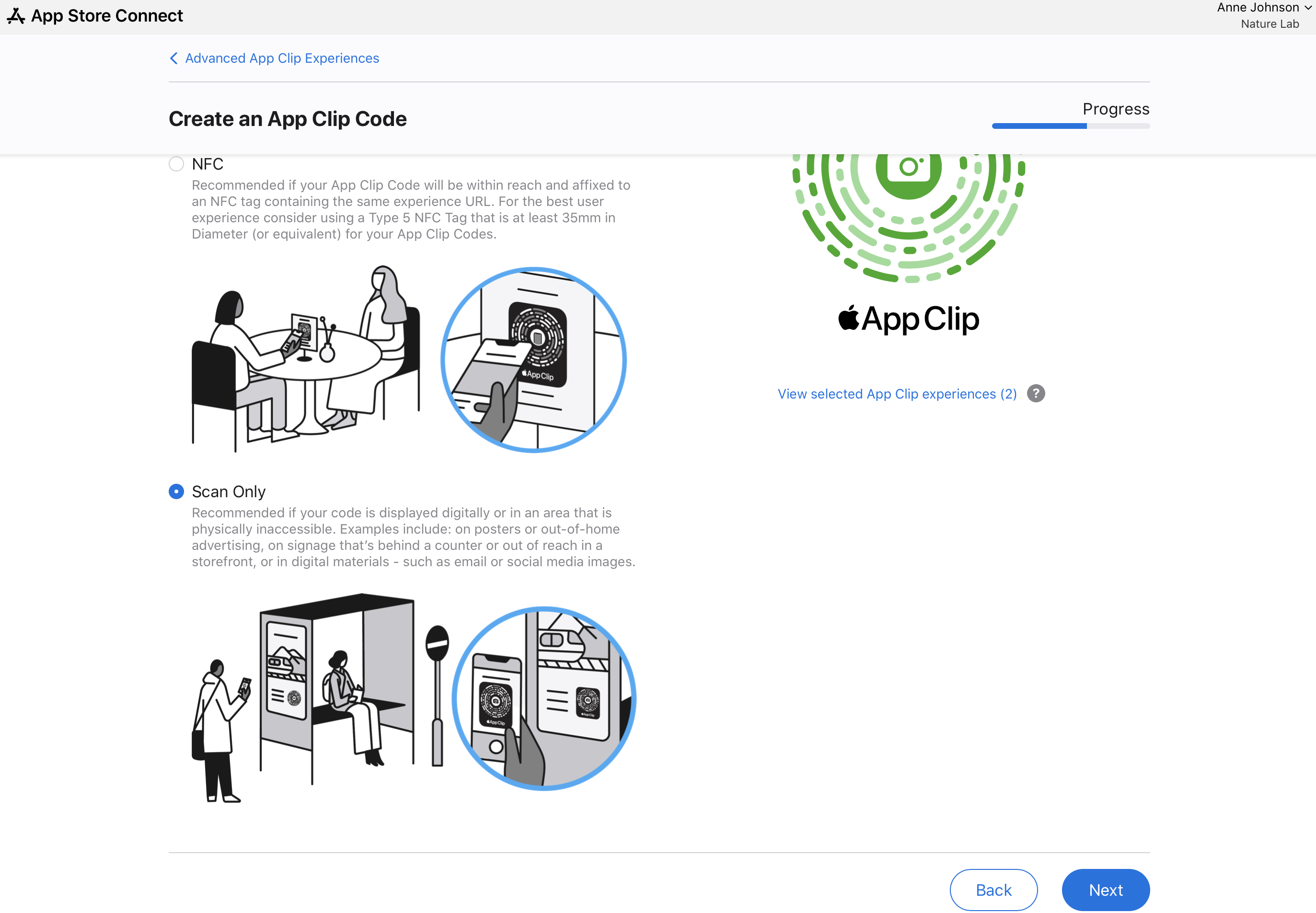 Note: You won’t be able to select App Clip experiences that are incompatible with App Clip Codes.
