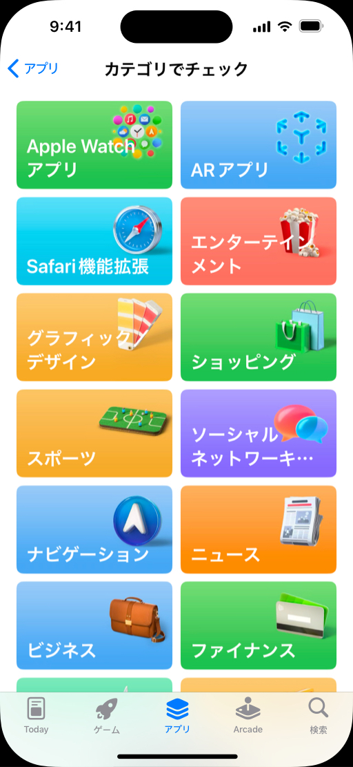 App Storeのカテゴリは、ユーザーが自分のニーズに合ったアプリを見つける上で役立ちます。デベロッパは、プライマリカテゴリとセカンダリカテゴリをアプリに設定できます。アプリを見つけてもらいやすくするには、プライマリカテゴリが特に重要です。ユーザーが閲覧したり検索結果を絞り込みに影響し、App Storeのどのタブにアプリが表示されるのかがプライマリカテゴリにより決まるからです。そのため、最も関連性の高いプライマリカテゴリを選択してください。アプリに関連のないカテゴリを選択すると、審査への提出時にアプリが却下される原因になる可能性があります。