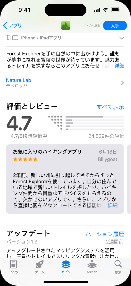アプリに対する称賛のコメントは、説明の最後か、プロモーション用テキストの一部として記載することをおすすめします。検索結果に表示されやすくするよう、説明に不要なキーワードを加えることは避けてください。また、説明で具体的な価格を記載することは避けてください。価格はプロダクトページですでに表示されています。説明で価格に言及すると、地域によっては不正確な情報になる場合があります。