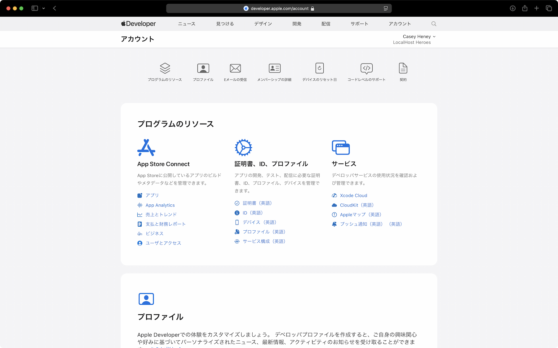 - Certificates, Identifiers & Profiles(証明書、ID、プロファイル)