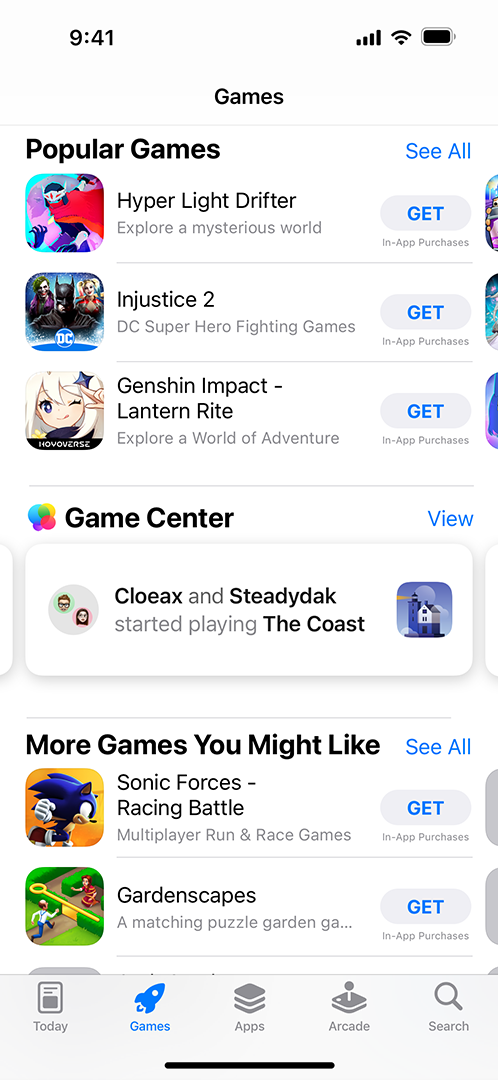 Game Center가 활성화된 게임은 Apple 기기 전반에서 더 자주 노출되며, App Store의 Game Center 활동 관련 위치에 표시됩니다. 이를 통해 친구들의 활동을 본 신규 플레이어가 게임에 유입될 수 있으며, 기존 플레이어는 게임을 계속 플레이할 동기가 생깁니다.