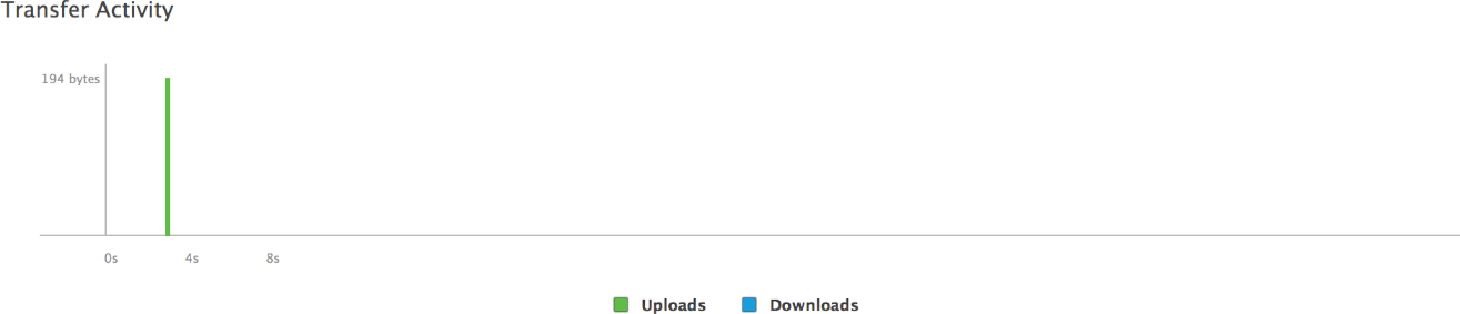 The iCloud Report displays the bandwidth usage of iCloud over time for your app. Green bars indicate that transaction logs or other miscellaneous requests have been sent from the currently attached peer to iCloud, and blue bars indicate that transactions logs and requests have been received from iCloud. You use the Transfer Activity timeline to: