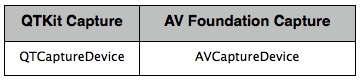 Figure 14  Device Capture Classes for QTKit and AV Foundation.