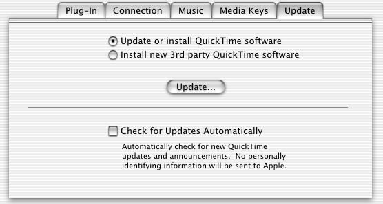 • Addition of a new Third-party QuickTime Component Downloader. This is designed to provide a registry of QuickTime components on an Apple server from third-party developers who want to include their components in user downloads and updates on an as-needed basis.
